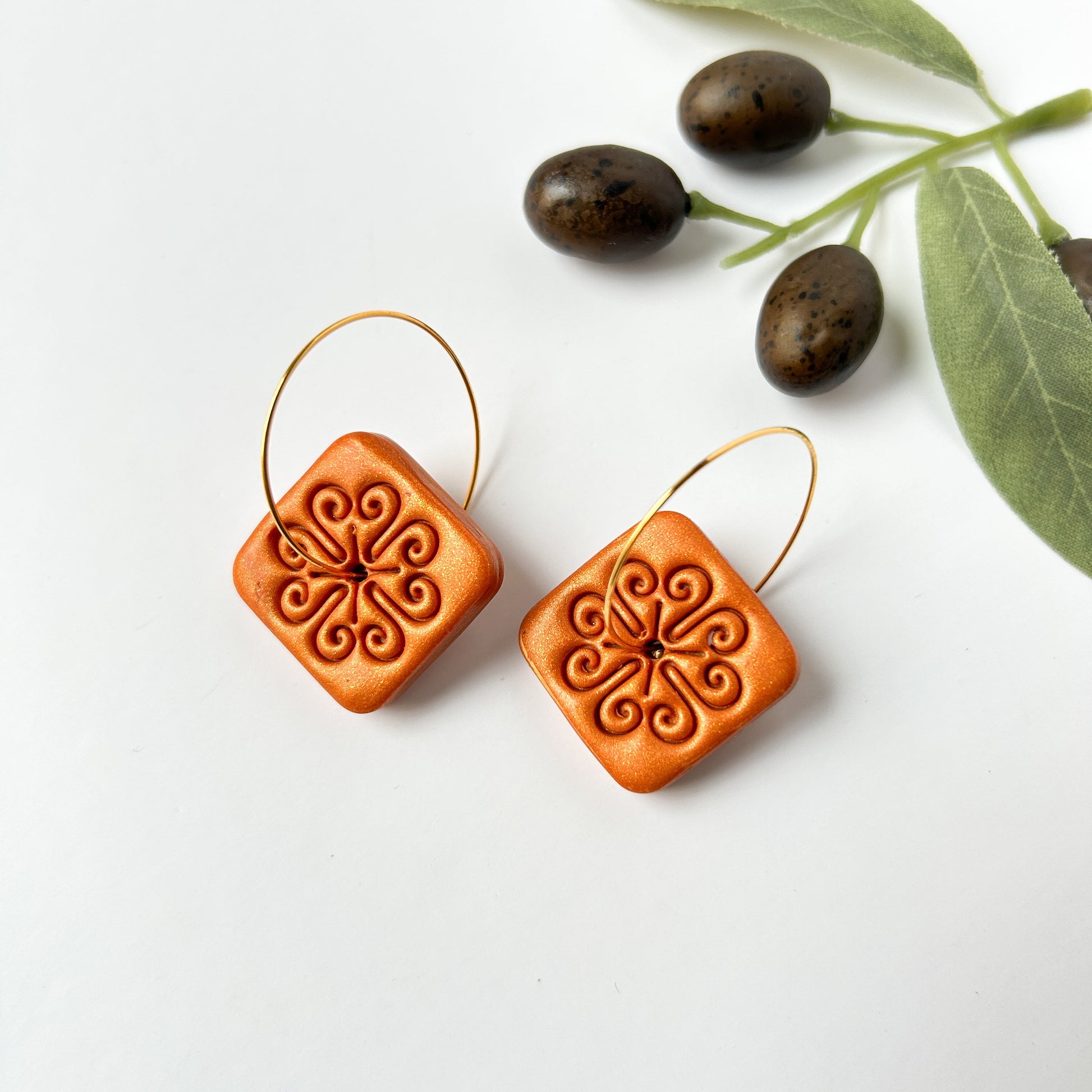 Avec leur éclat cuivré, ces boucles d’oreilles sont un clin d’œil élégant à la saison automnale. Leur teinte orangée métallisée évoque les couchers de soleil d’octobre et la chaleur des récoltes.